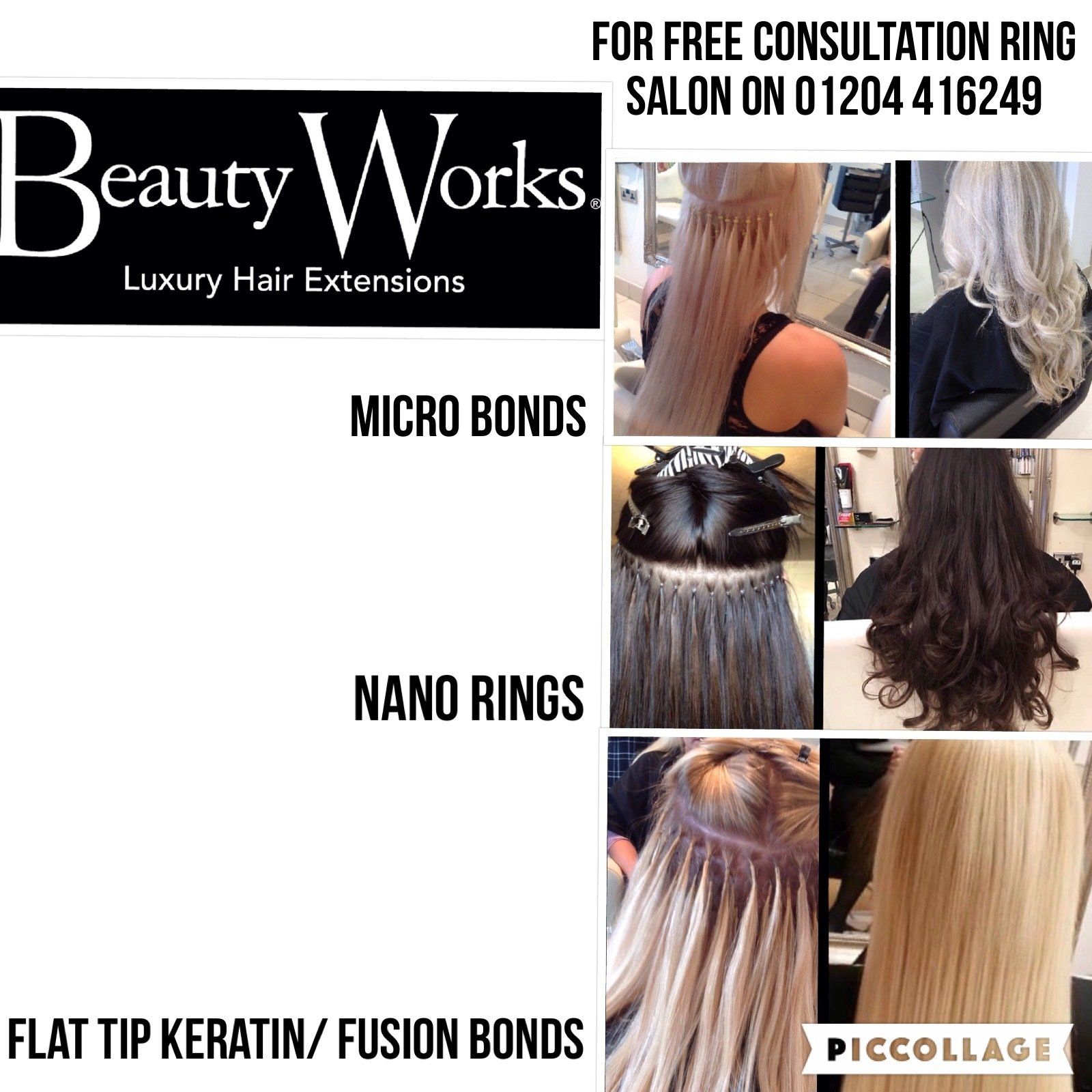 There are over ten different types of hair extension fittings that we can select from to suite each  styles and types of hair. Each type has its own price and we take great care to ensure that each clients hair extension choice is the right one for them. We simply  cannot give a price over the telephone as there are so many variations. Beauty Works and other hair extension suppliers are priced after a consultation in the salon only. ,