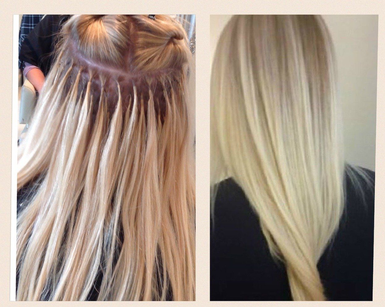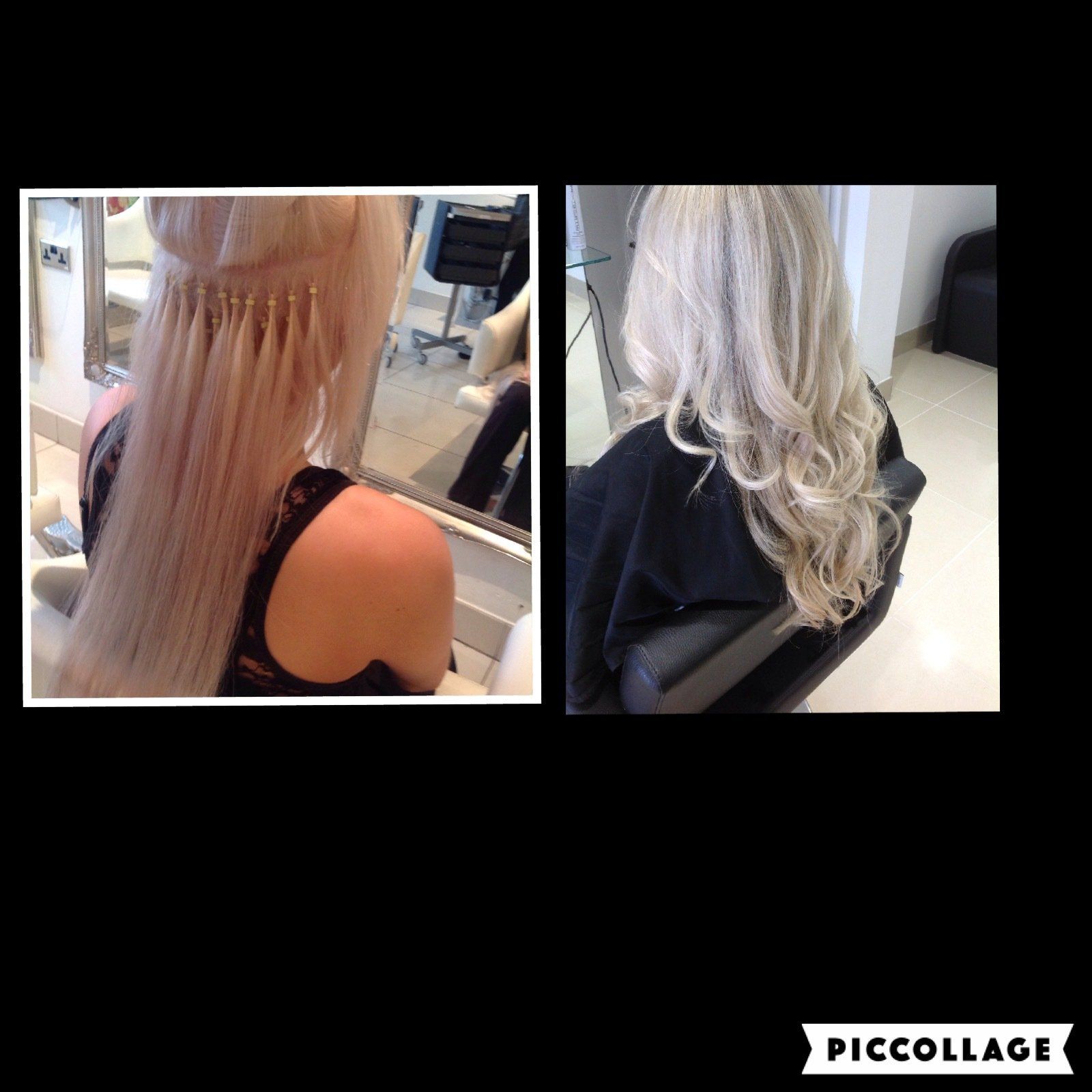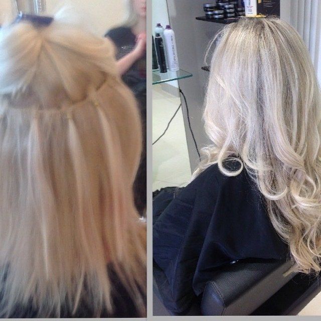 This is a weft attachment with micro rings. This is very quick and firm method of applying hair extensions to create length, thickness and volume. This method needs refitting every 8 weeks.